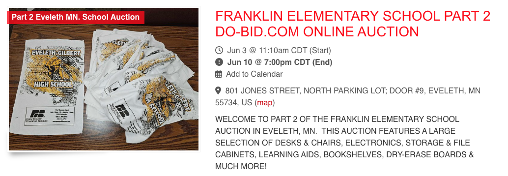 LINKS TO FRANKLIN ELEMENTARY EXCESS SCHOOL ITEMS DO-BID AUCTIONS: