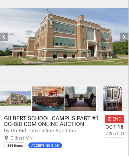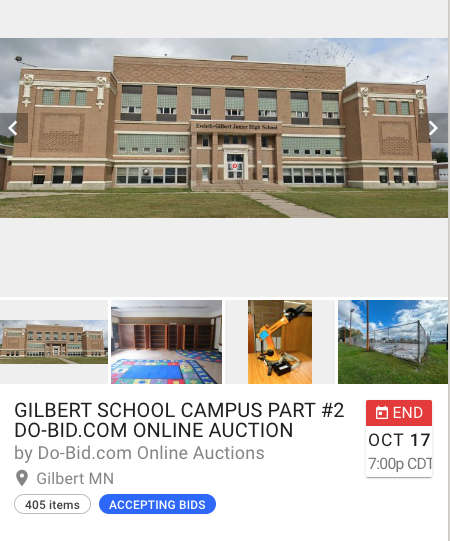 To get to the Gilbert School Campus Auctions and register, please go to www.do-bid.com and click on either auction as pictured here. When you enter the auction, click on ITEM #0A/0B (Auction #1) and/or ITEM #0/#426 (Auction #2) for details about Preview Dates, Payment Terms, and the Load Out/Pick Up Dates for any item won. Please feel free to pass this information on to others who may be interested!