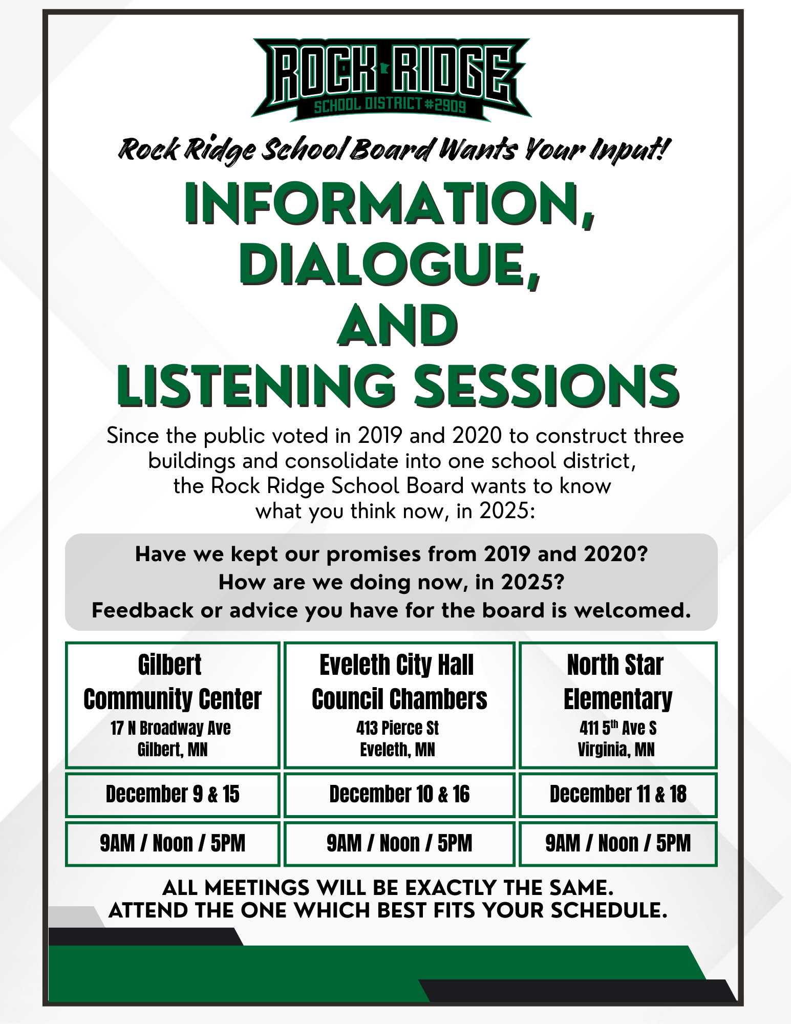 Information, Dialogue, and Listening Sessions